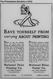 Philadelphia advertisement for National Penn Printing Co., 1233 Vine, printer, theaters, movie programs, PHILADELPHIA EXHIBITOR 1935, Vine Street, Film Row