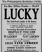 Philadelphia advertisement for Dennis Games Company, Lucky game, 1235 Vine, movie theaters, Vine Street, Film Row, PHILADELPHIA EXHIBITOR 1936, Frank Hamerman