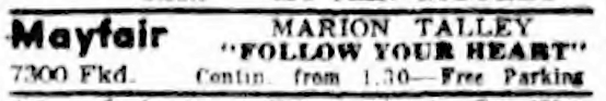 Mayfair Theater, 7300 Frankford, Philadelphia, Cottman, INQUIRER, Philadelphia theaters, movie listings, FOLLOW YOUR HEART, Marion Talley