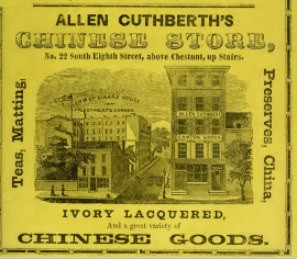 McElroy’s Philadelphia Directory, 1854 Philadelphia advertisement for Allen Cuthberth’s Chinese store, South Eighth Street 1854 Like Loading...